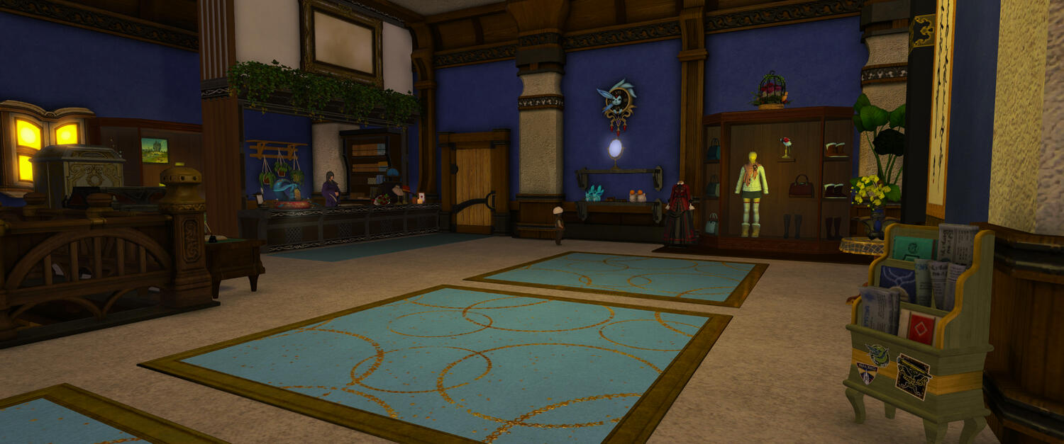 "Wir bieten eine große Auswahl an Kleidung in verschiedensten Größen. Von Lalafell über Hyuran bis hin zu Roegardyn. Farbenfroh oder eher schlicht ja sogar funkelig, dies ist alles kein Problem. Ein Eleganter Wintermantel, festes Schuhwerk oder flauschige Socken, jeder Wunsch ist uns Gehör. Bequeme Unterwäsche oder eine einfache Leinenhose, aber auch eine reizende oder Maskuline Auswahl auch jenes führen wir.